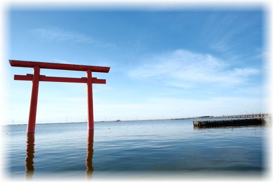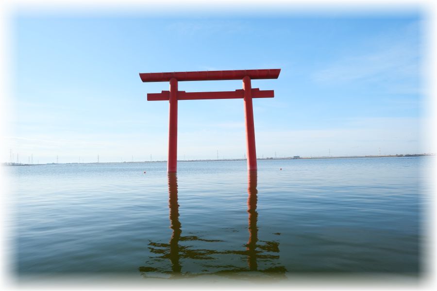 北浦の水面に鳥居が浮かぶような姿を見ると、参道が陸側だけで完結していないことに気付かされます。水の向こうから神気が漂い、鹿島の地で迎えられ、そしてまた陸へと続く道があるのです。こうした見えない参道の存在は、鹿島の神聖さをより深く感じさせてくれます。