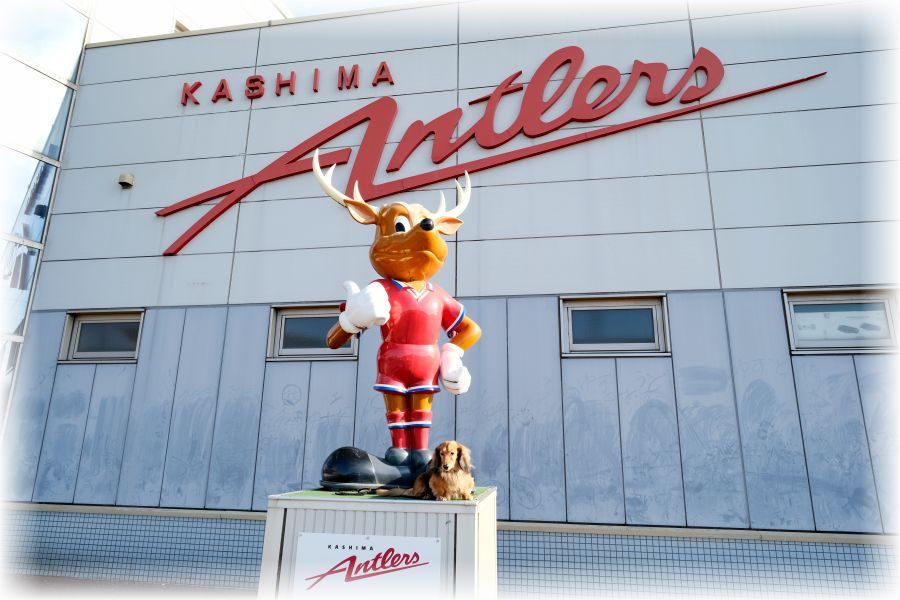 アントラーズの地元に来たら、アントラーズ感のある場所は、ドギーと行きたかった場所の一つ。そらうみのサッカー好きゲストさんに聞いてやってきた、鹿島アントラーズのクラブハウスには「しかお」が居て、一緒に写真を撮ることができました。