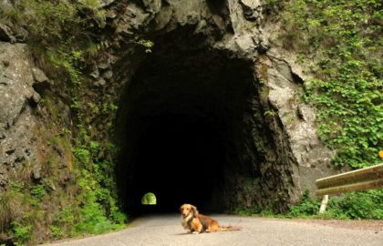 旅犬ドギーは飼主のドライブの便乗員でもあります。時折「酷道」「険道」に付き合わされることがありますが、こちらは国道のトンネル。岩をくり抜いただけのワイルドな素掘りトンネルは当国道のハイライトシーンです。 国 … 続きを読む 豪快な素掘りトンネルとミステリアスな滝<大釜隧道・大釜の滝/徳島県那賀町>
